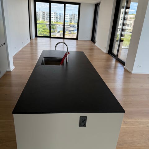 Made a Mano glaseret Ossido lavastenplade, Made a Mano, Glasseret lavastensplade. Ossido, light blue. Ny. Ca. halv pris af butikspris. 108x59,5x2 cm. Du kan også se pladen i køkkenscenen i afsnit 3 i ‘Familier som vores’.