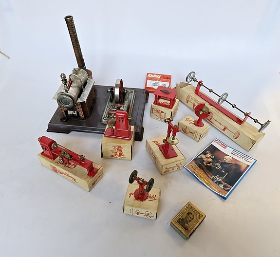 Bogstavsæt af jern, engelsk (uden æøå), inkl. tal og & tegn. 3 mm. I kasse af træ.