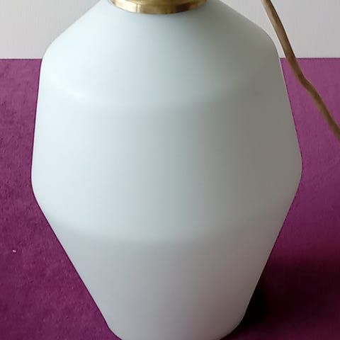 Smukkeste loftspendel med skærm i mønstret kraftig glas og ophæng i fine træ og messing detaljer. H 27 Ø skærm 12,5 cm. Den kommer med 250 cm hvid ledning. Den koster 325 kr. #loftspendel #loftspendeliglasogmessing #smukloftspendel #loftslampe