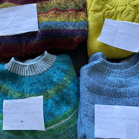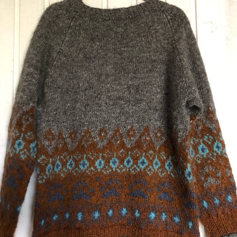 Smuk kvalitets sweaters i råhvid og teglfarve fra Læsø strik TM. Ren uld.