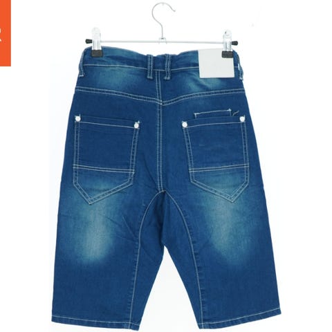 Et par blå børneshorts i økologisk bomuld med elastisk talje og to knapper foran. De har to sidelommer og er lavet i et let materiale. Shortsene er enkle og velegnede til afslappet brug.