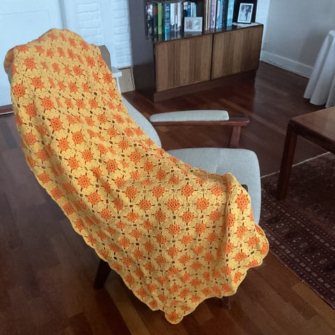 Grønt hæklet tæppe (str. 130x94 cm)