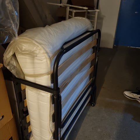JESBY Gæsteseng JESBY 80x190 antracitgrå Stål. 8 cm tyk madras med kerne af polyuretanskum. Med lameller. Kan klappes sammen. B80 x L190 x H35 cm