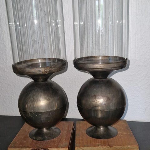 Til kirkelys / bloklys. Den lille har 3 små ben og måler ca 8,5 cm i diameter. Den store stage har en diameter på ca 12 cm, og passer til et lys med 6 -7 cm’s diameter.