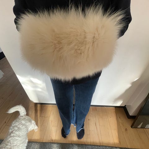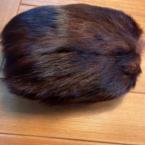 Smuk muffe i pels. Indvendig en lille lomme med lynlås.
