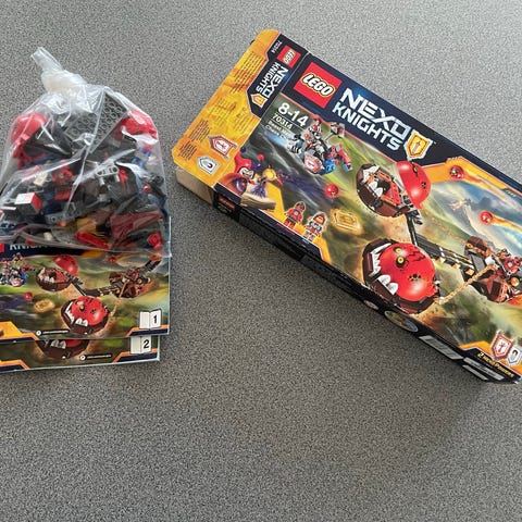 Beskrivelse: Brugt Lego Nexo Knights Jestro’s Evil Mobile set til salg billigt.