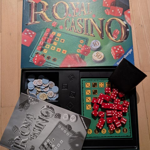 Casino Game Brettspill med komplett innhold inkludert spillebrikker, kort og spilleregler. Spillet leveres i original eske og er egnet for flere spillere. Materialer inkluderer plast og papp.