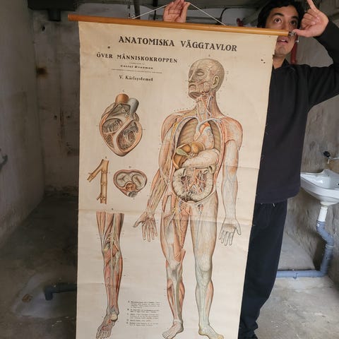 Gammel undervisningstavle,svensk, søstjerne anatomi