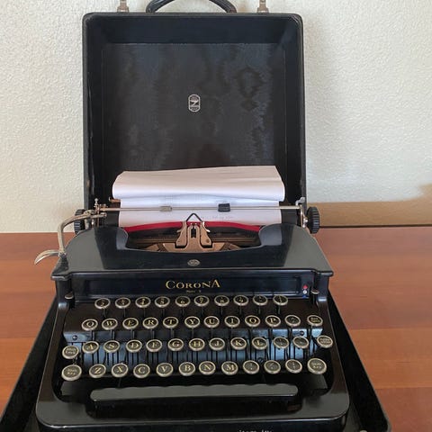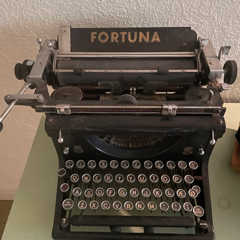 Sælges: En historisk og fascinerende Smith Premier Simplex skrivemaskine, fremstillet i Syracuse, U.S.A. Denne model er en forenklet udgave af den berømte Model 10, kendt for at være en af de få fuldtastatur-maskiner med synlig skrift ("front-strike").