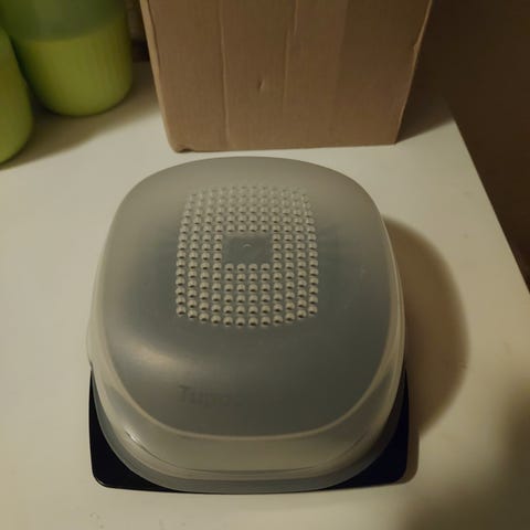 Uanset hvilken størrelse eller smag du vil have på din ost, så kan du nu opbevare og servere den med RIG-TIGs Opbevaringsboks til ost. Boksens størrelse gør det muligt at opbevare én stor ost eller flere små. Boksen har et elegant design som gør at du kan sætte den på morgenmads-, frokost - eller middagsbordet. Opbevar din ost i køleskabet, sæt osteboksen direkte på bordet, brug underdelen til servering og skær osten direkte på underdelen. Design: Troels Seidenfaden. Materiale: plast, WPS (træ/plastkomposit) Højde: 14 cm (ostens maksimumhøjde er 10,5 cm). Bredde: 20 cm.