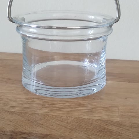 Lene Bjerre glaskrukke med låg 16 cm høj 9 cm i diameter.