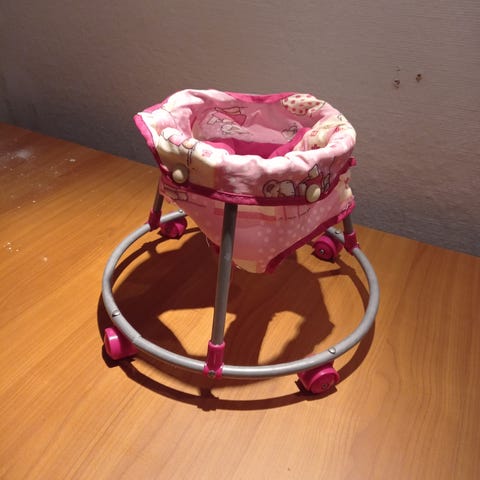 Meget velholdt gåvogn fra 70'erne eller 80'erne. Den har ganske få små brugsspor og står som næsten ny. Overdelen kan vippes frem og tilbage, så dukker og bamser kan side både den ene og den anden vej. Den har gummihjul, så den ikke larmer henover fx et trægulv.
