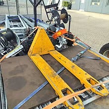 Kvart palleløfter designet til håndtering af paller. Udstyret med et håndtag til nem betjening og hjul for mobilitet. Velegnet til løft og transport af paller i lager- og industrimiljøer.