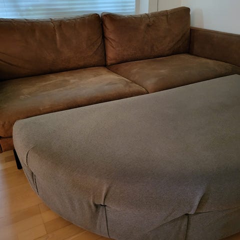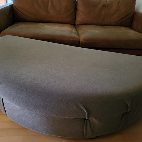 Unik puf/ottoman/fodskammel/footstool i halvmåne form. Puffen fungerer super godt til både 2 og 3 personers sofaer.