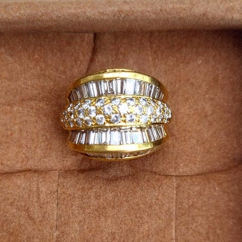 Ring, guld, V, Guld ring med diamant og store stjerne rubiner. Denne ringen er fantastisk.