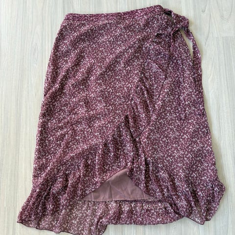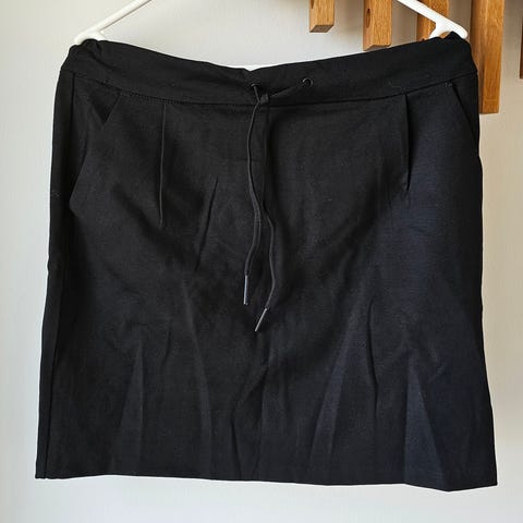 Vero Moda Sort Nederdel i størrelse L. Nederdelen har et lagdelt design med små prikker og en elastisk talje. Materialet er let og gennemsigtigt med en underforing, hvilket gør den velegnet til afslappet og hverdag brug.