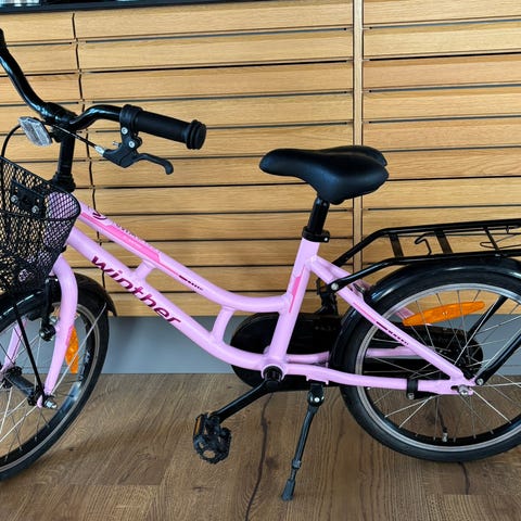 Fineste lyserøde pige cykel. Har lidt små skræmmer hist og her (se billeder) INGEN rust!!! Har altid stået inde i skuret når den ikke har været brugt. Der er lås på og der medfølger to nøgler.