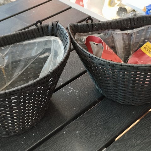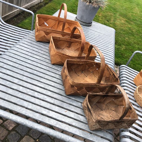 Sæt bestående af flettede kurve i forskellige størrelser og farver. Kurvene er lavet af naturlige materialer og kan anvendes til opbevaring eller dekoration i hjemmet.Gode til brænde f.eks. 100 kr.pr.styk