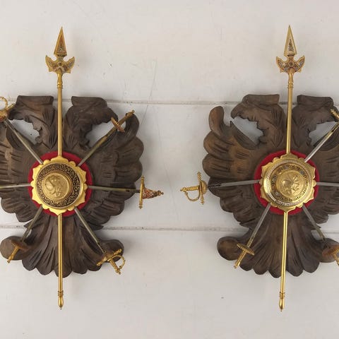 Virkelig smuk Spansk sværdholder til cocktailparties, pindermader, Ost etc fra Toledo med 8 sværd I messing og stål. Vanvittig flot som ses på billederne