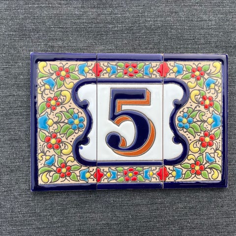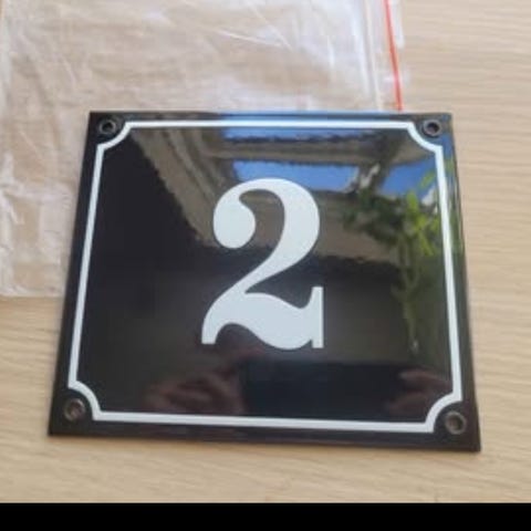 Emalje husnummer skilt med tallet 52, i farverne blå og hvid. Skiltet har firkantet form med huller i hjørnerne til montering. Materialet er emalje, hvilket giver en holdbar og vejrbestandig overflade.