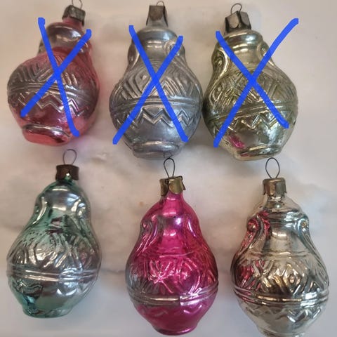 Ældre julekugle, Lille fint hus. Måler 6,2 cm.