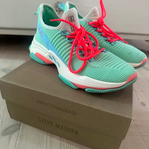 Steve Madden sneakers str. 40. Brugt ganske lidt uden synlige brugsspor. Har brugt dem til sort træningstøj med sportsbh i samme farve. Super cool. Bemærk de lækre detaljer foran.