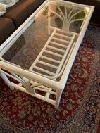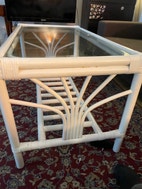 Hvidmalet bambusbord -80er retro - med brugsspor men i fin stand