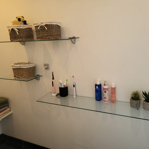 Samlet hyldedybde (fra væg til yderkant) : 29,5 cm