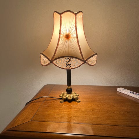 Vintage bordlampe i porcelæn og messing fod