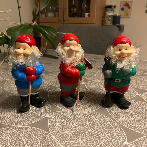 JuleGnomer, 35 cm når huen er udstrakt. Samlet 50,- sender gerne med dao for købers regning eller kan hentes I Søborg.