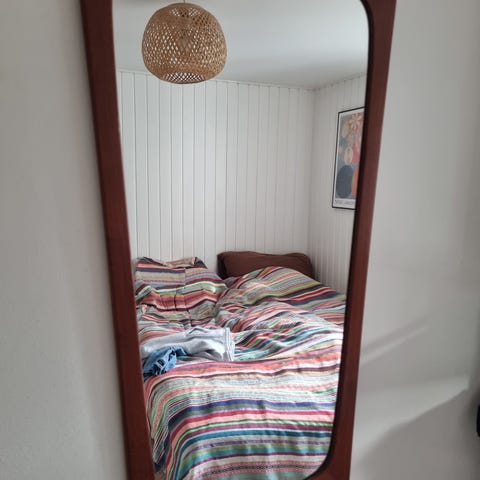 Vægspejl, b: 60 h: 80, Facetslebet spejl i teaktræ