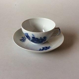 Royal Copenhagen Fuld Saksisk Blomst Stor Tekop No. 1550. I fin stand, men lettere slid på guldkanten. Kop måler 11 cm x 6,5 cm / 4,52 in. x 2,55 in. Underkop måler 16.5 cm / 6,5 in.