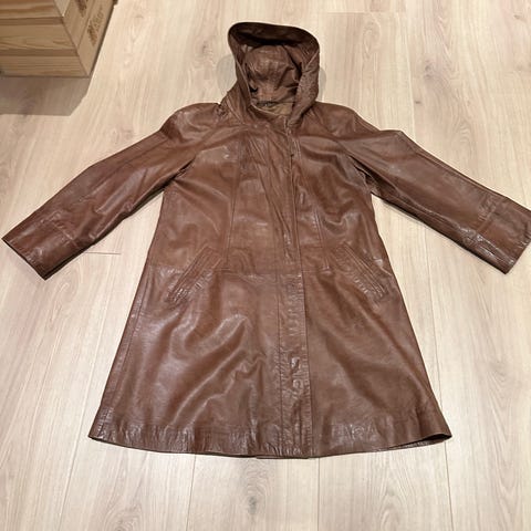 Flot vest med hætte i vaskebjørn, fremstår som ny M/L