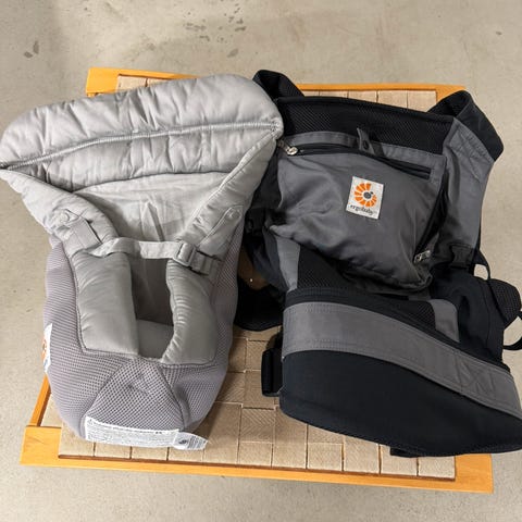Rigtig god bæresele, der er nem at bruge. Fra 5,5kg til 20kg. Indsats til baby følger med (der er skjolder på kraven i babyindsatsen).