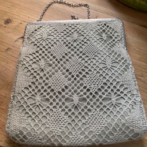 Anden håndtaske, andet mærke, andet materiale, Hæklet . Håndlavet retro med bambushåndtag. Længde 39 cm. Højde 26 cm. Bredde 5 cm,, sender gerne kan også hentes i Klarup