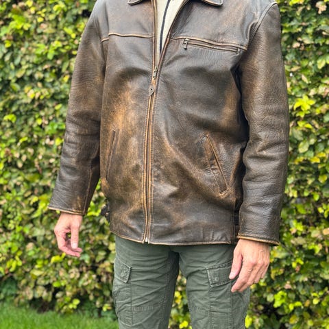 Flot kraftig læder jakke med uldfoer. Gætter at den er fra 60’erne/70’erne. Kom gerne med dit bud.