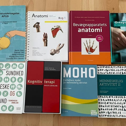 Jeg sælger mine studiebøger fra ergoterapeutuddannelsen. Alle er i rigtig pæn stand og fejler intet. Afhentes i Skovlunde.