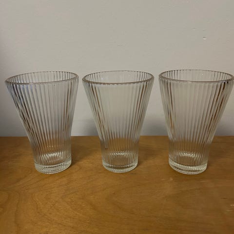 Vasen er blevet produceret på Fyens Glasværk fra 1934, hvor krydsmønstret efterligner slebet glas.