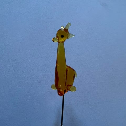 Stor vellignende giraf monteret på stålplade, så den står sikkert.