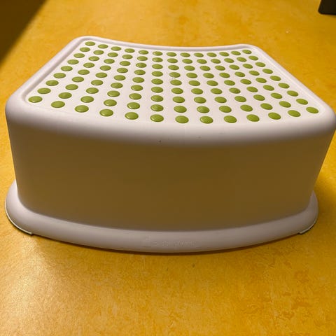 Skammel, skridsikker, anvendelig på badeværelset i køkken eller andre steder. Fin stand.