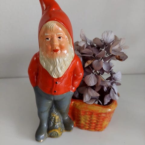 Højde 48 cm. Består af to dele, den ene del sættes ned over den anden. Tungt, så det står stabilt.