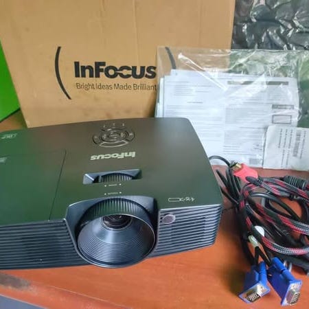 Infocus lysstærk projekter med linse til at skyde på lærred 10-12 meter væk. Har været brugt i kirkesal.