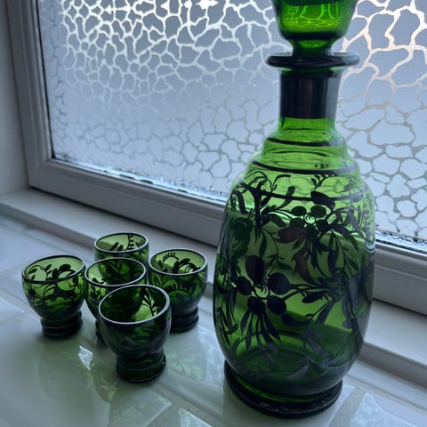 Karaflen til højre har et skår nederst på proppen. Prisen er pr. stk.
