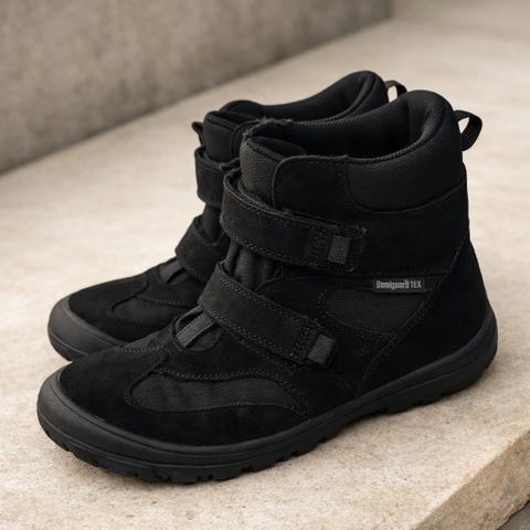Komfortable barfods vinterstøvler- perfekt til dit barns første skridt i de kølige måneder. Disse støvler er omhyggeligt designet til at understøtte og udvikle dit barns fod, med en bred foran pasform og en smal, fast hælkappe, der sikrer, at støvlen forbliver godt på foden. Den flade sål uden hælfald fremmer en naturlig fodposition, hvilket er ideelt for små fødder i vækst. Petit Winter fremstår i et tiltalende design med detaljer i lækkert læder og er foret med blød uld, der sikrer varme og behagelige fødder hele dagen. Den praktiske velcrolukning og muligheden for justering af støvlens længde gør det nemt at tilpasse pasformen, så dit barn kan opleve optimal komfort og støtte. En slidstærk snude beskytter mod slitage, hvilket gør disse støvler til et perfekt valg for både de små, der stadig kravler, og dem, der er begyndt at gå. Petit Winter kombinerer funktionalitet med stilfuldt design og er derfor det ideelle valg til dit barns vintergarderobe, hvilket giver dem frihed og sikkerhed til at udforske verden med tillid.