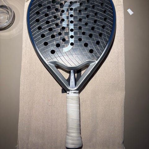 Battet er i godt stand - har fået slået et stykke af lakeringen, som er lukket med sort lak - der er ikke hul på Carbon.
