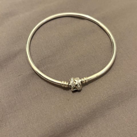 Pandora Sølv Armbånd til kvinder, lavet af sølvmateriale. Armbåndet har en slange-lignende kæde med en rund lås med detaljer. Designet til at bære charms og tilpasses efter personlig stil.