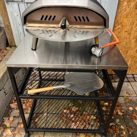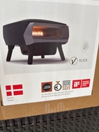 Witt Piccolo Rotante Pizza Oven with a 13-inch cooking surface, designed in black color. The oven features a rotating mechanism for even cooking and is made with materials suitable for pizza baking. It is designed following Danish design principles and has received design awards including the iF Design Award 2015.