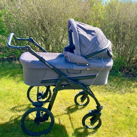 Barnevogn fra Trille med langt liggemål og lille indsats. Barnevognen kan derfor bruges både til baby og større barn. Vi har været rigtig glade for den.