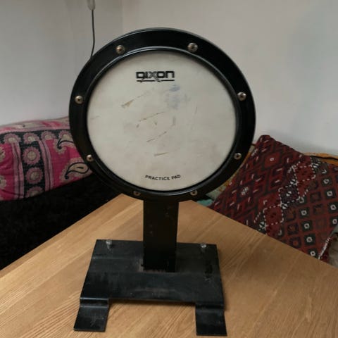 Øvetromme fra Remo inklusiv stativ og nye trommestikker.