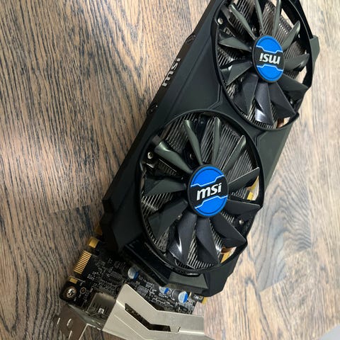 MSI grafikkort med dual fan kølesystem. Grafikkortet har flere tilslutningsmuligheder inklusive DVI og HDMI. Designet til brug i stationære computere til grafik- og spilapplikationer.
